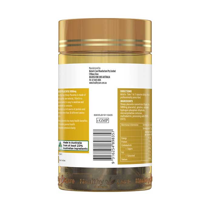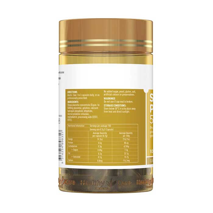- Tinh chất nhau thai cừu tươi nguyên chất: (5000mg), calcium hydrogen phosphate, gelatine, cellulose fibre, maltodextrin, processing acids (E551, E572)