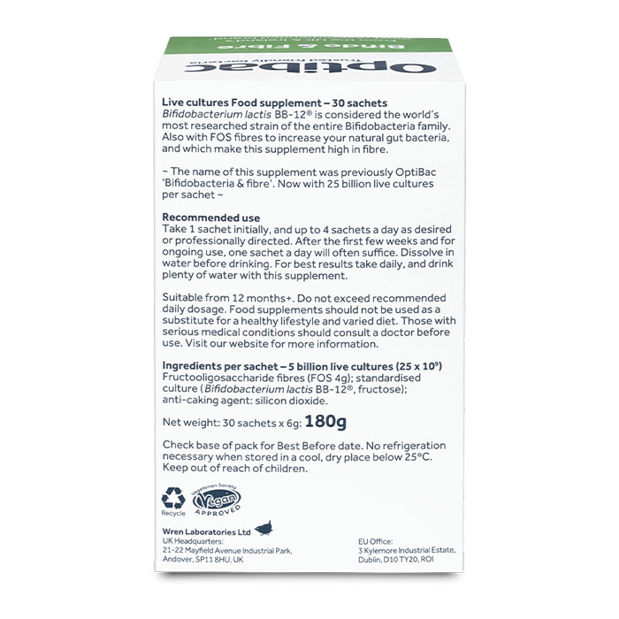 Mỗi gói đảm bảo 25 tỷ vi sinh vật + 4g sợi FOS.