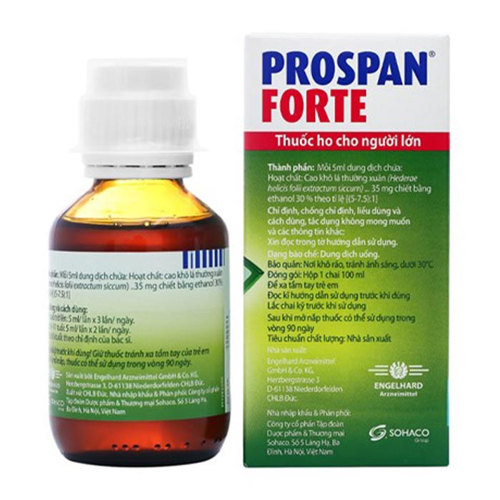 - Uống thuốc ho Prospan Forte (không pha loãng) vào buổi sáng, (buổi trưa) và buổi tối.