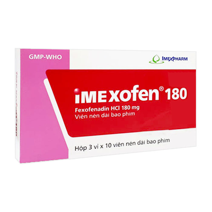 - Hoạt chất: Fexofenadin hydroclorid: 180mg
