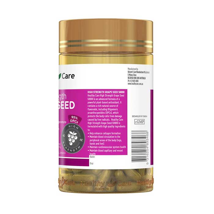 - Chiết xuất Vitis vinifera (hạt nho) tương đương với 12g (12000 mg) hạt khô.