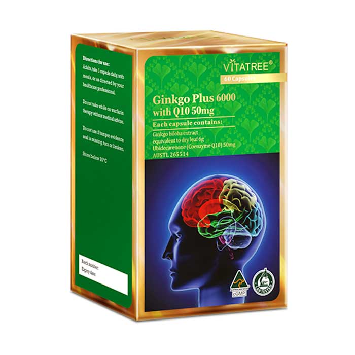 - Vitatree Ginkgo Plus 6000 With Q10 thích hợp dùng cho người trưởng thành với tình trạng suy giảm tuần hoàn não gây đau đầu, chóng mặt, mất ngủ, căng thẳng, tê bì chân tay.