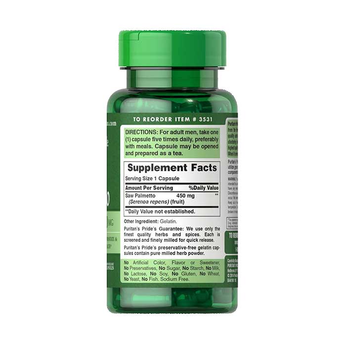 - Thành phần mỗi viên chứa: Saw Palmetto (Serenoa repens) (fruit) 450 mg.
