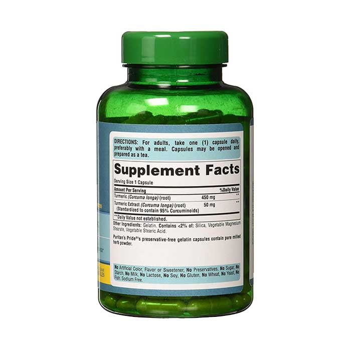 - Tumeric (Curcuma longa): 450 mg 500mg (95% Curcuminoids).